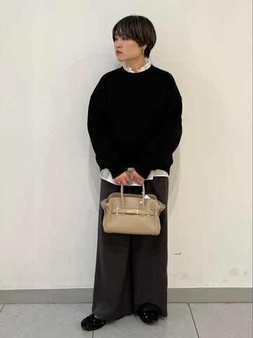 着心地:カシミヤ混で軽く暖かいです。ヒップまでしっかり隠れる丈感でとてもゆったりしており、1枚着としてはもちろん、シャツをインしてレイヤーも楽しめます。