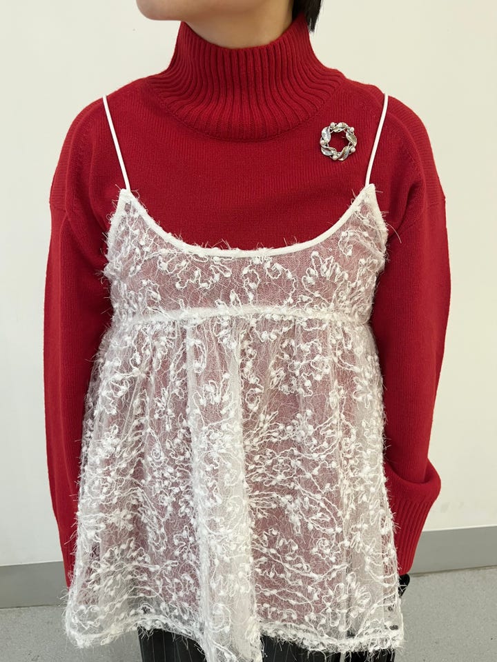 着心地:アジャスターがないため、肩紐は割とジャスト感があります。キラキラシアーでトレンドをふんだんに取り入れた素材で、一気に華やかさが出ます。
