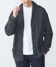 〔LARGE〕SHIPS: 〈手洗い可能〉ウールコットン アラン ショール カーディガン