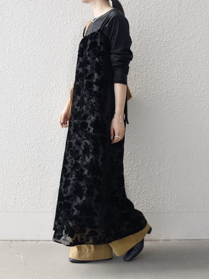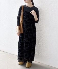 着用アイテム:SHIPS any:〈手洗い可能〉フラワー オパール ロング キャミワンピース ブラック
