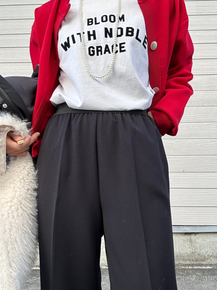?着心地:ウエストゴムで楽に着ていただけます。