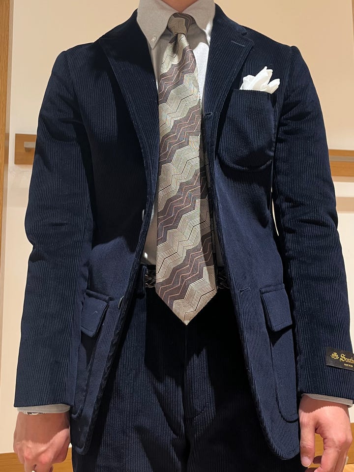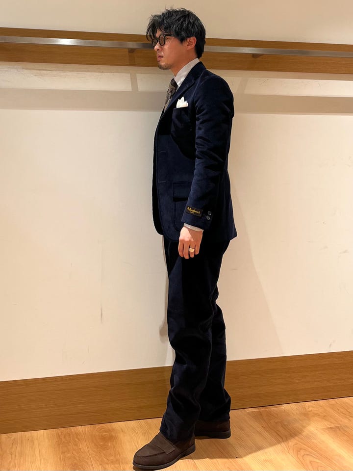 肉厚でハリのあるコーディロイは、威厳のある雰囲気をつくれます