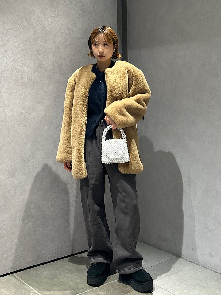 素材感・着心地:見た目のボリュームに反してとても軽いです。ファーの質感もしっとりふわふわでかわいいです。