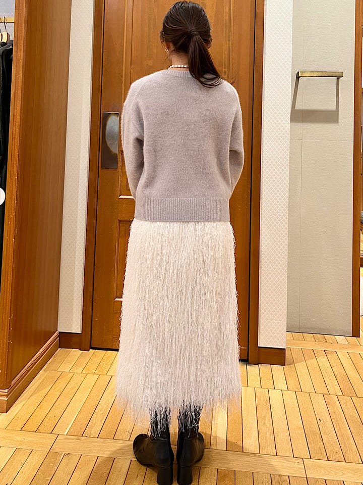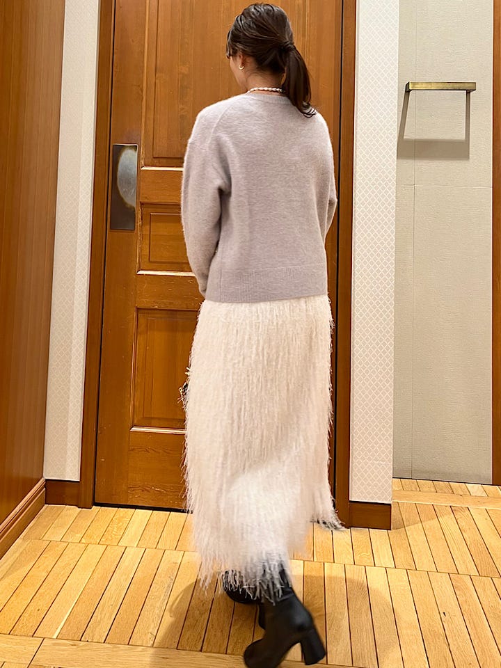 着心地:軽くて暖かい。Vネックの為顔周りスッキリきれる!