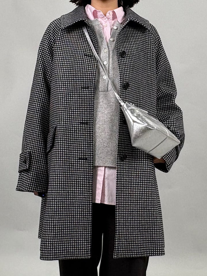 上質なウール素材。裏地は静電気の起こりにくいキュプラ素材。ラグランスリーブなので肩周りは動きやすく、中に着込んでもスッキリ着ていただけます◎チンフラップ付きなので、スタンドカラーでも使えます。