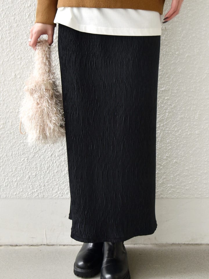 着用アイテム:ポリエステル ベロア プリーツ タイトスカート