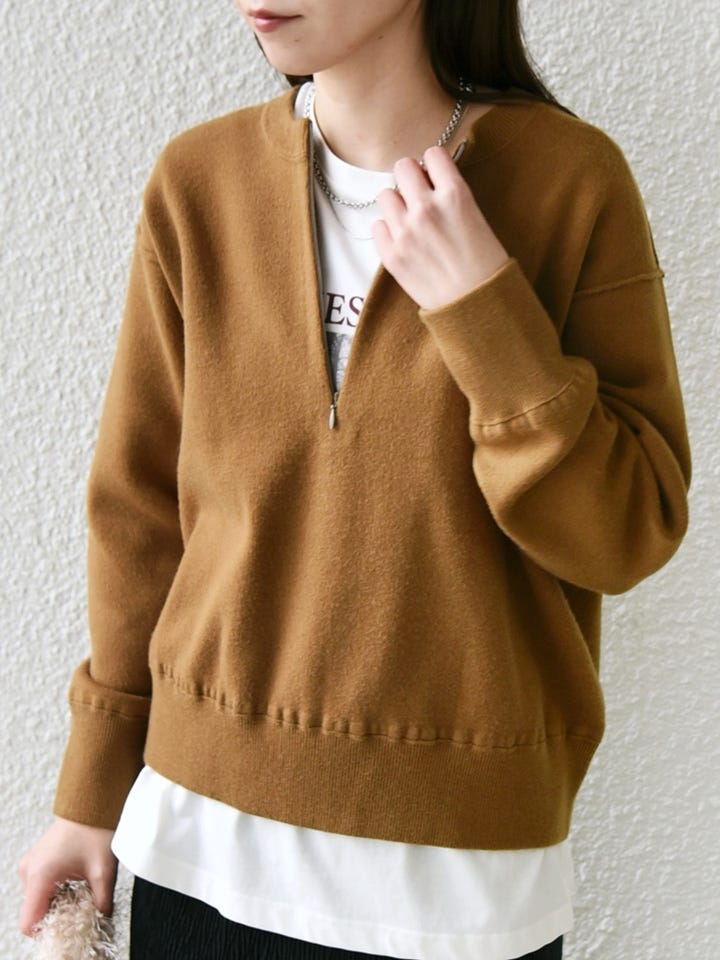 着用アイテム:フロント ジップ ニット