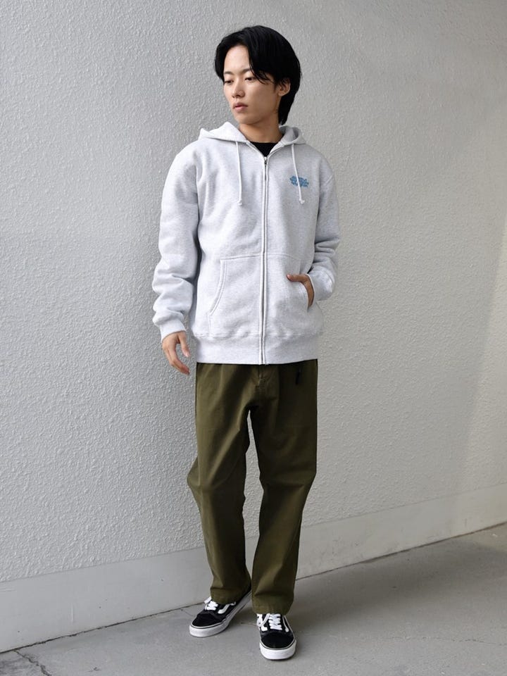 裏起毛のパーカーとチノパンを使ったカジュアルコーデ
