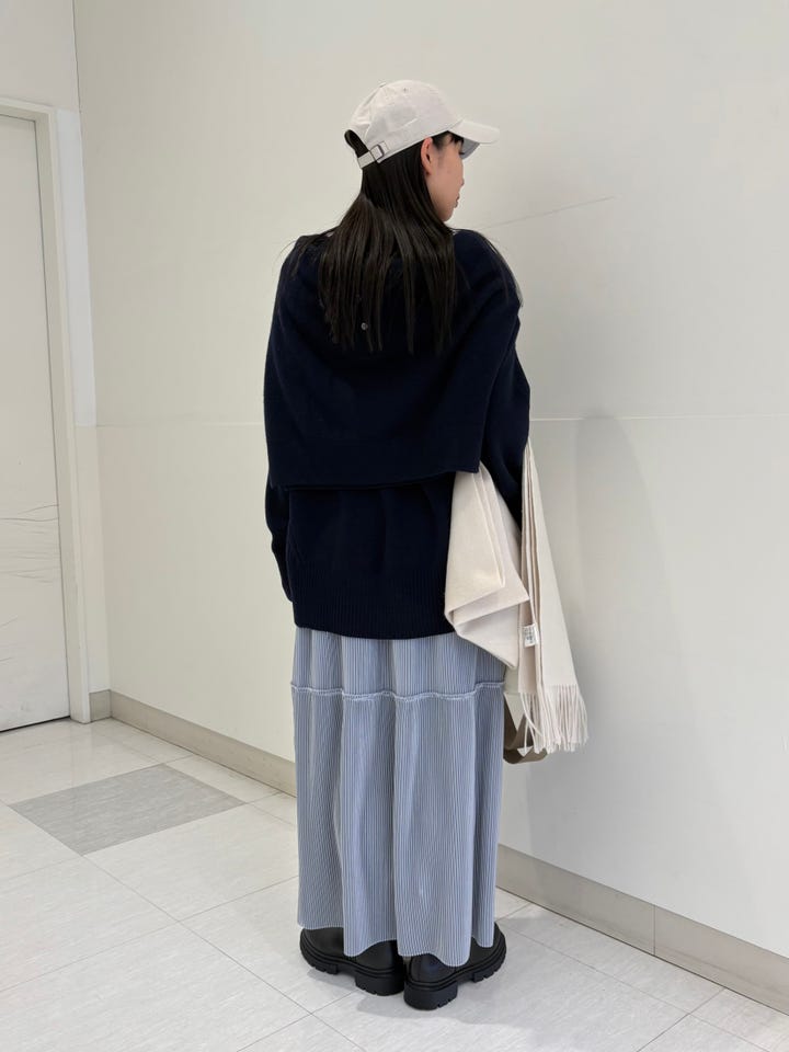 お尻が隠れるくらいの丈の長さ。敏感肌の方でもちくちくしない、カシミヤ混の素材です。毛がアウターにつきにくいためストレスフリーに着用できます。