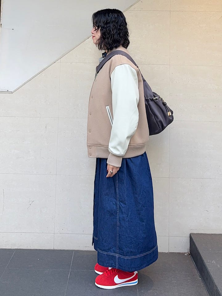 メンズのSですが、少しゆったりめのちょうど良いサイズ感でした。ウールなのでしっかり暖かいですし、袖のリブが風を通さないのでおすすめです。スカートやスラックスなどと合わせてもいいですし、カジュアルにカーゴパンツやデニムと合わせても◎