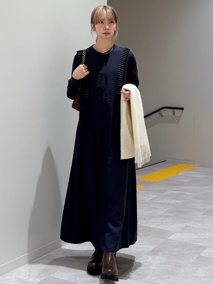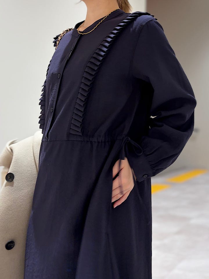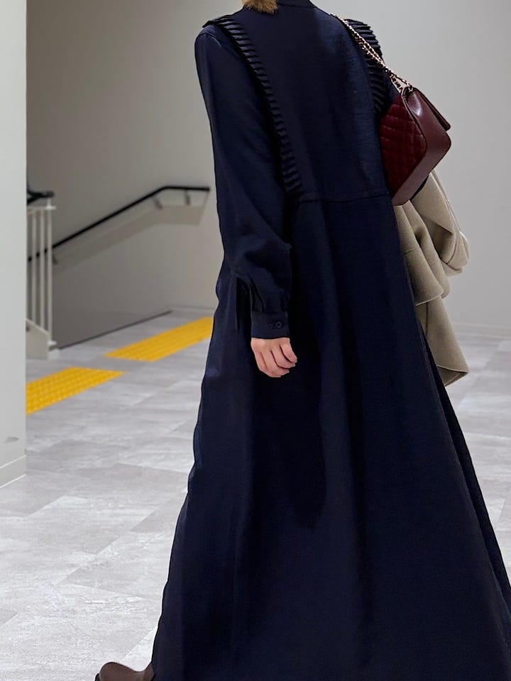 〔ONE SIZE〕SHIPS Colors:〈手洗い可能〉プリーツ デザイン ロングスリーブ ワンピース◇