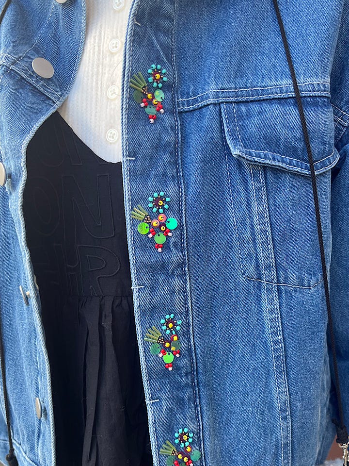 〔ONE SIZE〕bon_meur:〈洗濯機可能〉ビジュー ルーズ デニム ジャケット