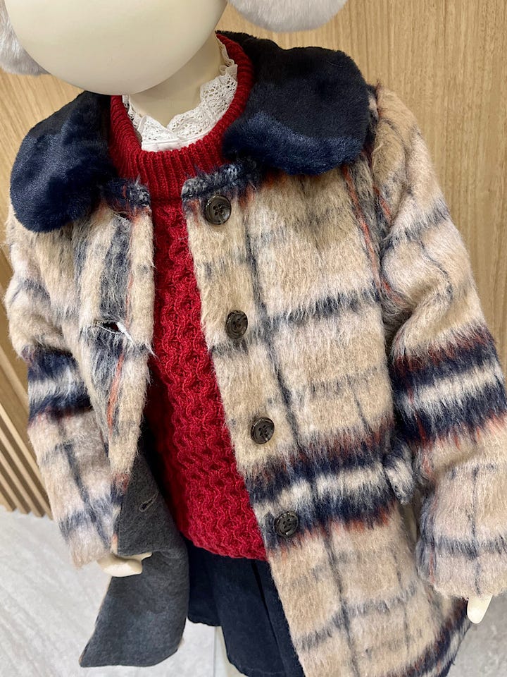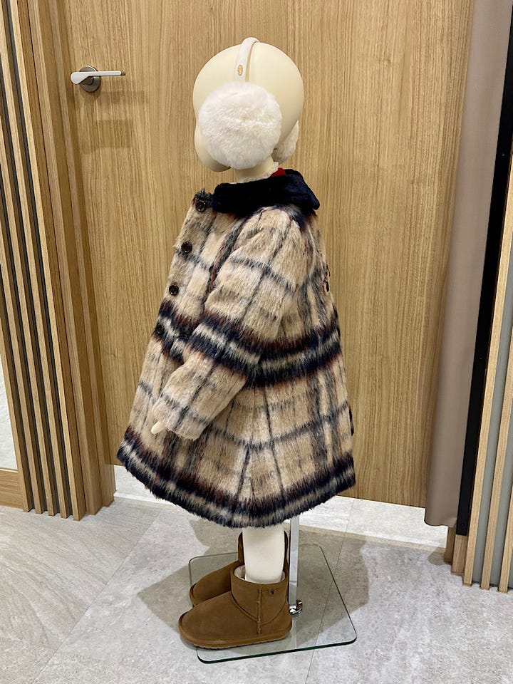 〔100〕SHIPS KIDS:100〜130cm/シャギー チェック コート