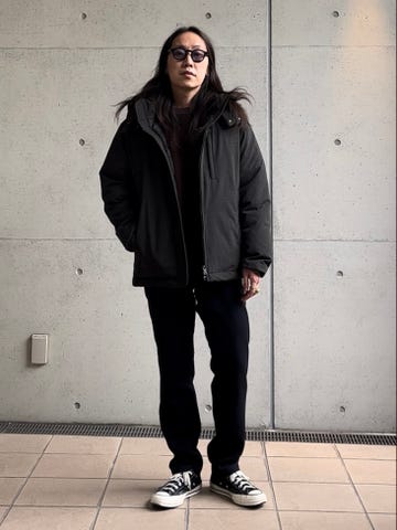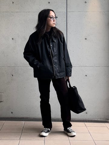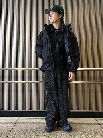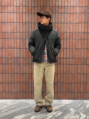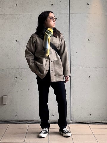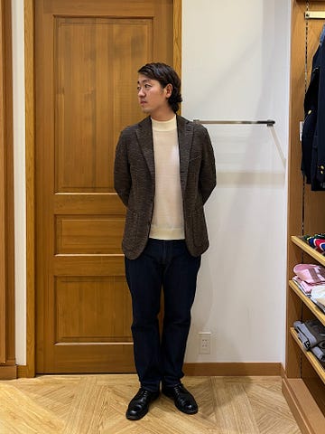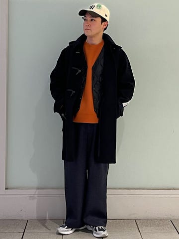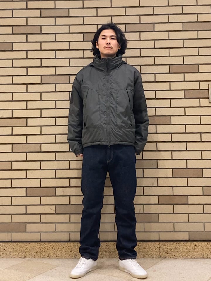 サイズ感:ゆったり目、中に厚手のニット着用できるサイズ感です。