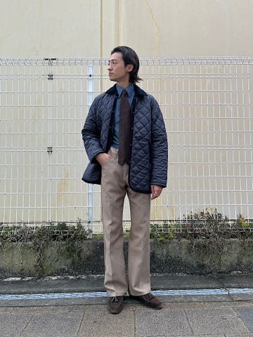 サイズ感:ジャストサイズ、ワンクッションあり、綺麗目にもカジュアルにも着用しやすいサイズ感です。