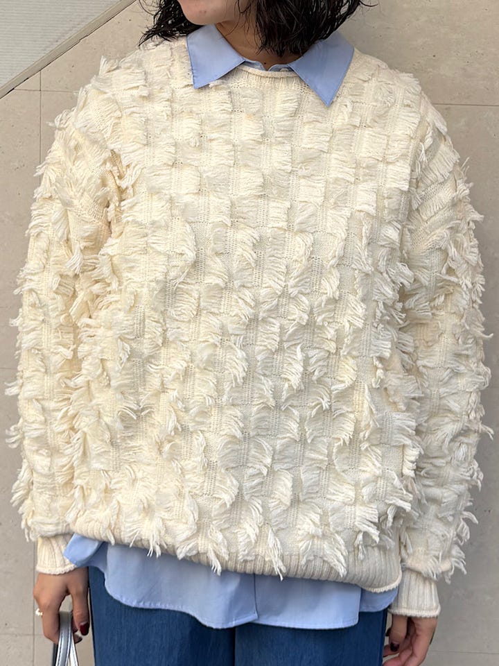 〔ONE SIZE〕SHIPS any:〈手洗い可能〉フリンジ デザイン ニット プルオーバー