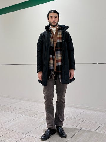 程よいワイドシルエットで、少しストレッチが効いているので楽に着用できる。
