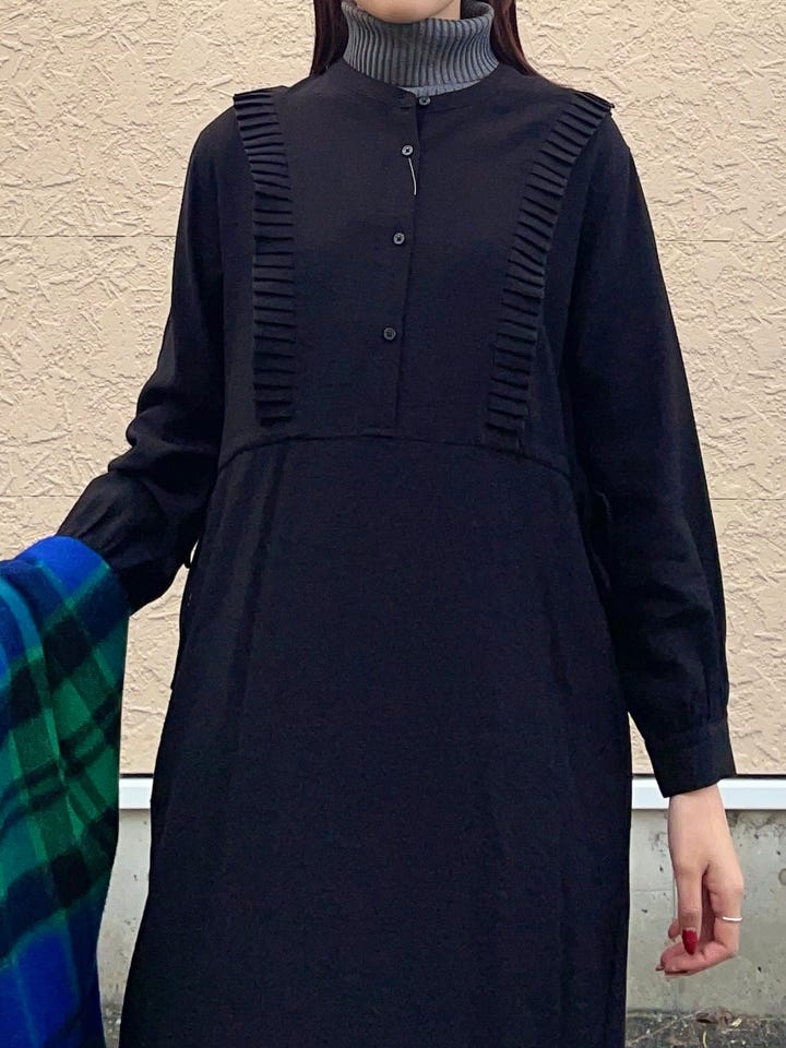 〔ONE SIZE〕SHIPS Colors:〈手洗い可能〉プリーツ デザイン ロングスリーブ ワンピース◇