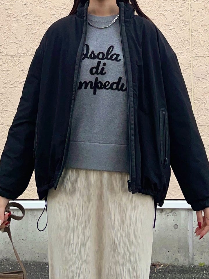 リバーシブルで着用でき、裾部分のドロストでシルエットを変えられる。