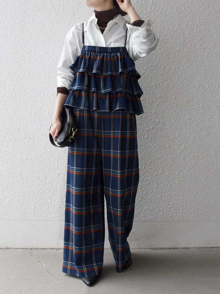 着用アイテム:SHIPS any:〈洗濯機可能〉チェック フリル ティアード サロペット