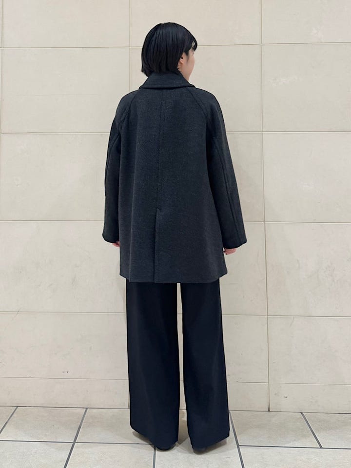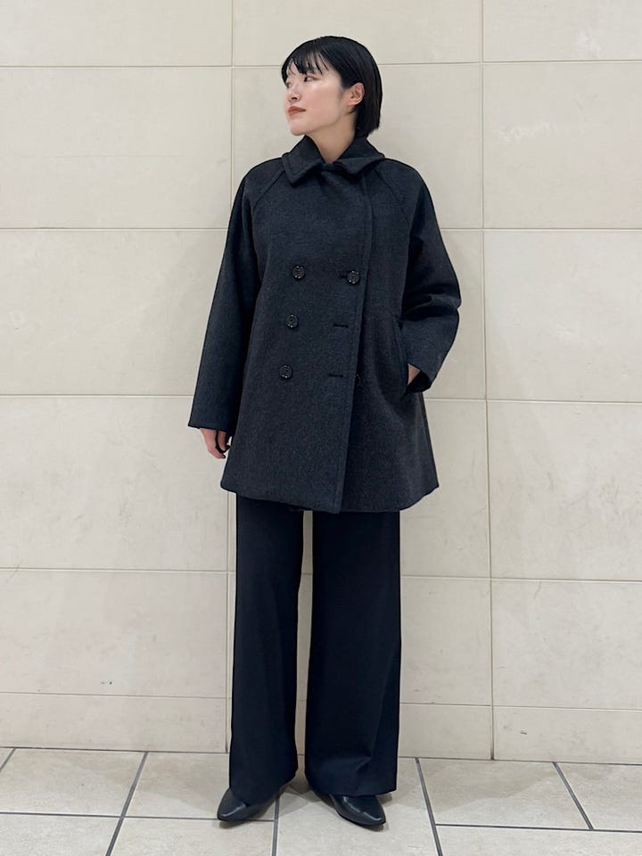 ベーシックなPコートで、首元を留めてステンカラーでも着用可能。