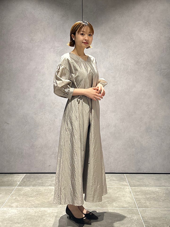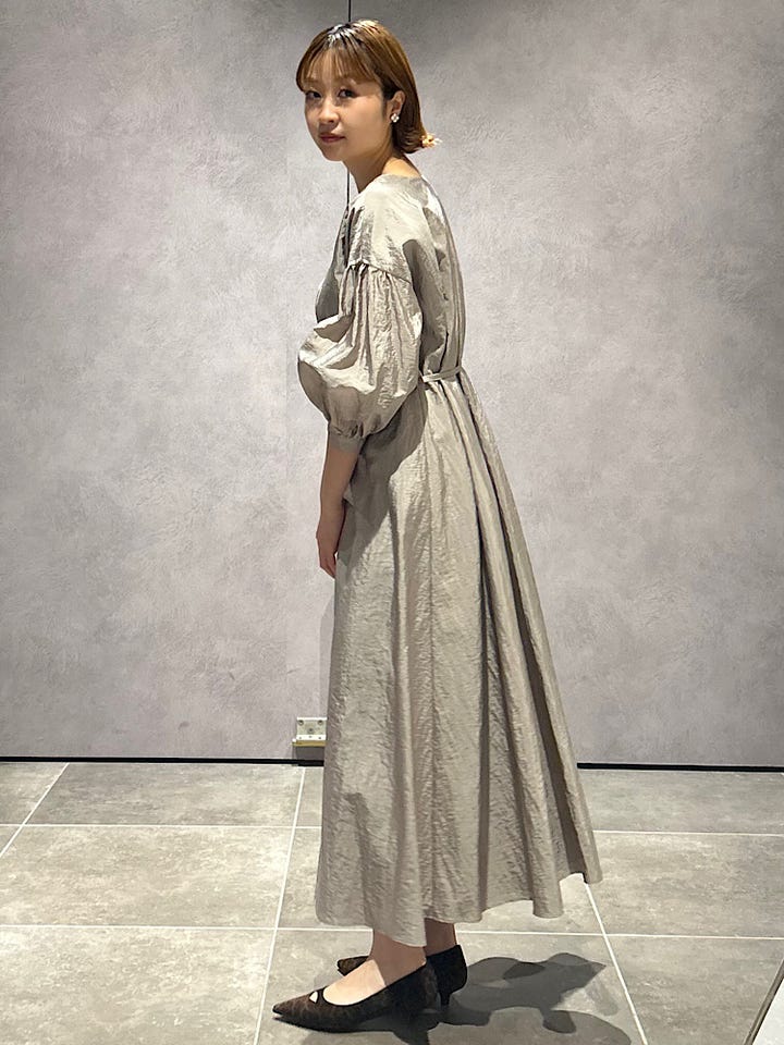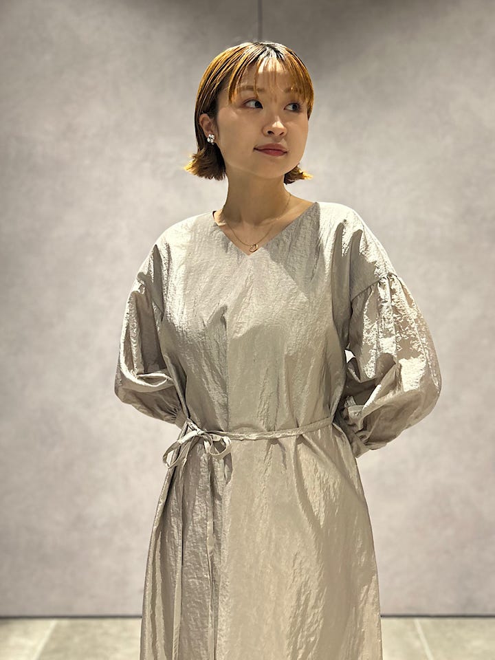 素材感・着心地:さらっとした生地ですがハリがあり透け感なく安心して着用いただけます。無地でも表面感ありのぺっと見えません。光を集めやすいサテンで顔周りも明るい印象に◎