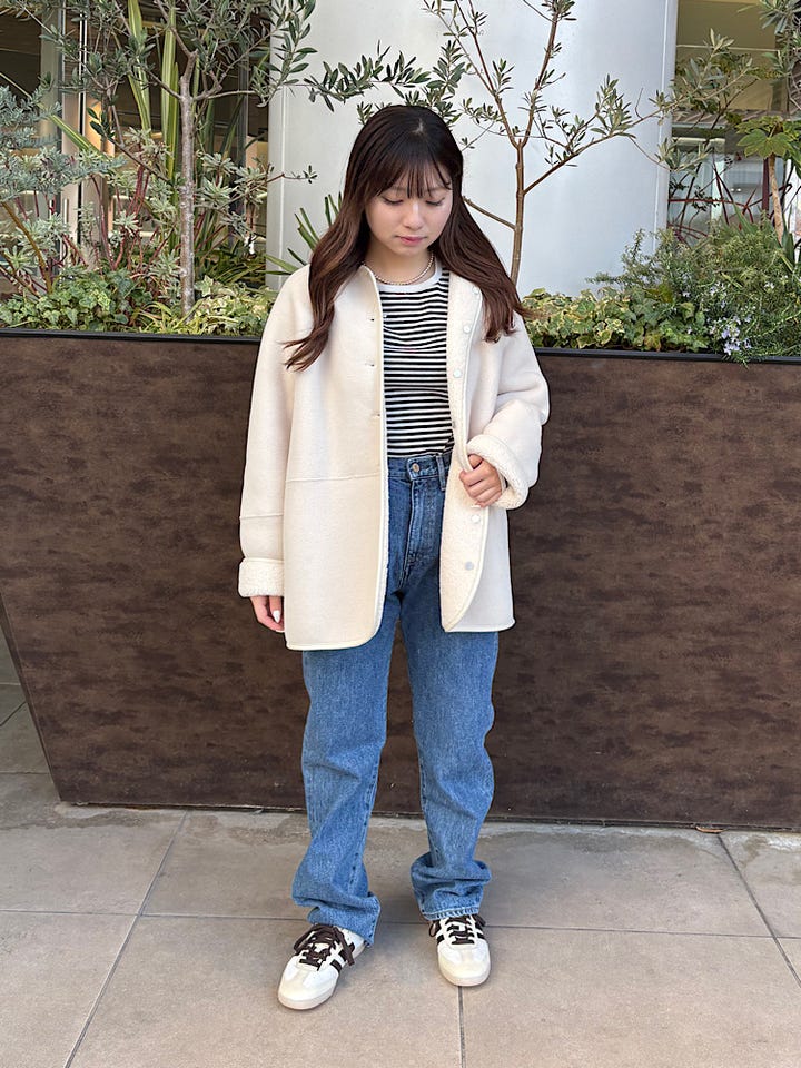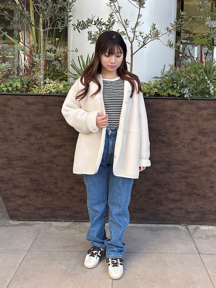 着心地 :フィット感のあるサイズ。程よいラメ感でいっきに冬コーデに。