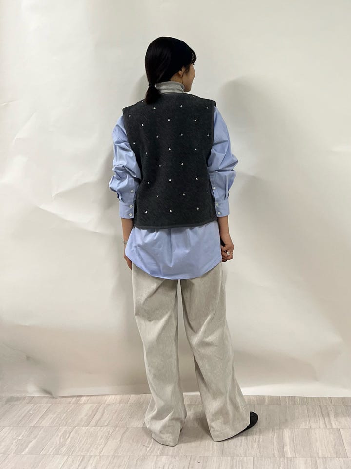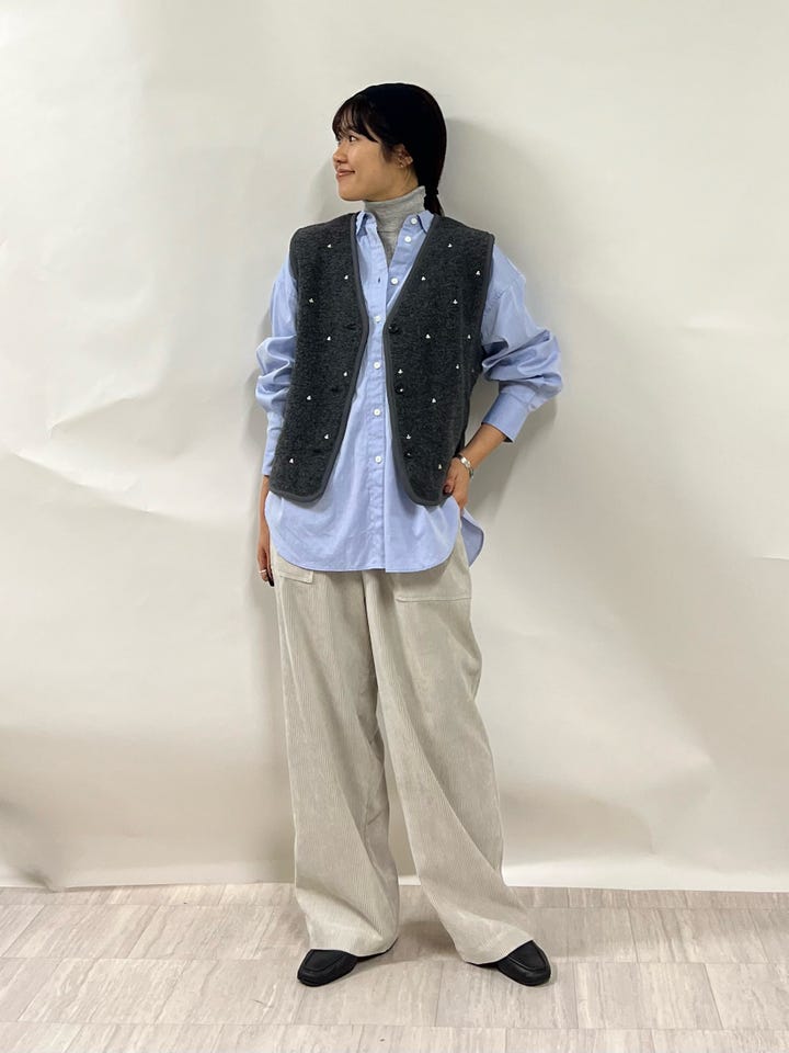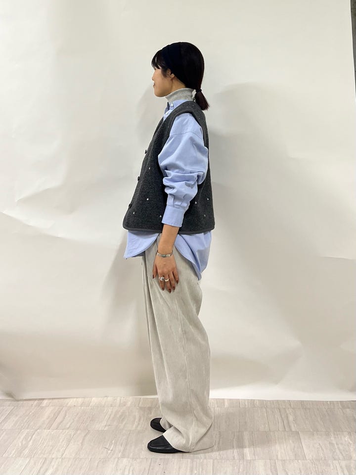 コーデュロイ素材。柔らかく楽な履き心地です。ワイドシルエットですが落ち感があるのでスッキリ見えます。