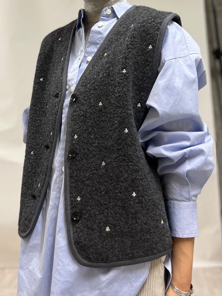 〔ONE SIZE〕【SHIPS別注】assiette:ウール混 ボア 刺繍 ベスト