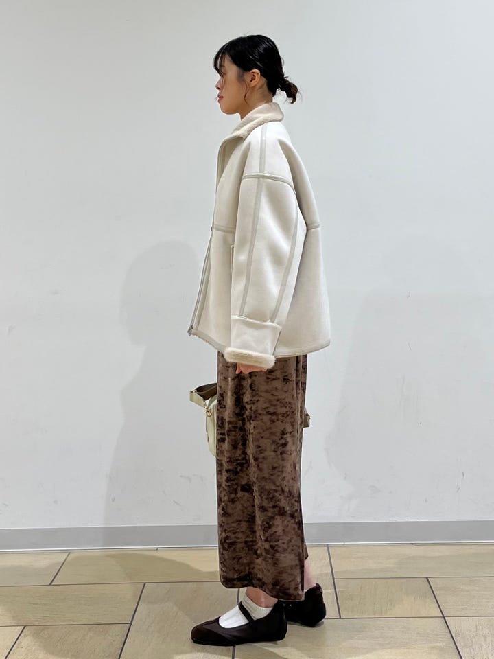 着心地:ベロア素材のスカート。ウエストはゴムで履きやすいです。