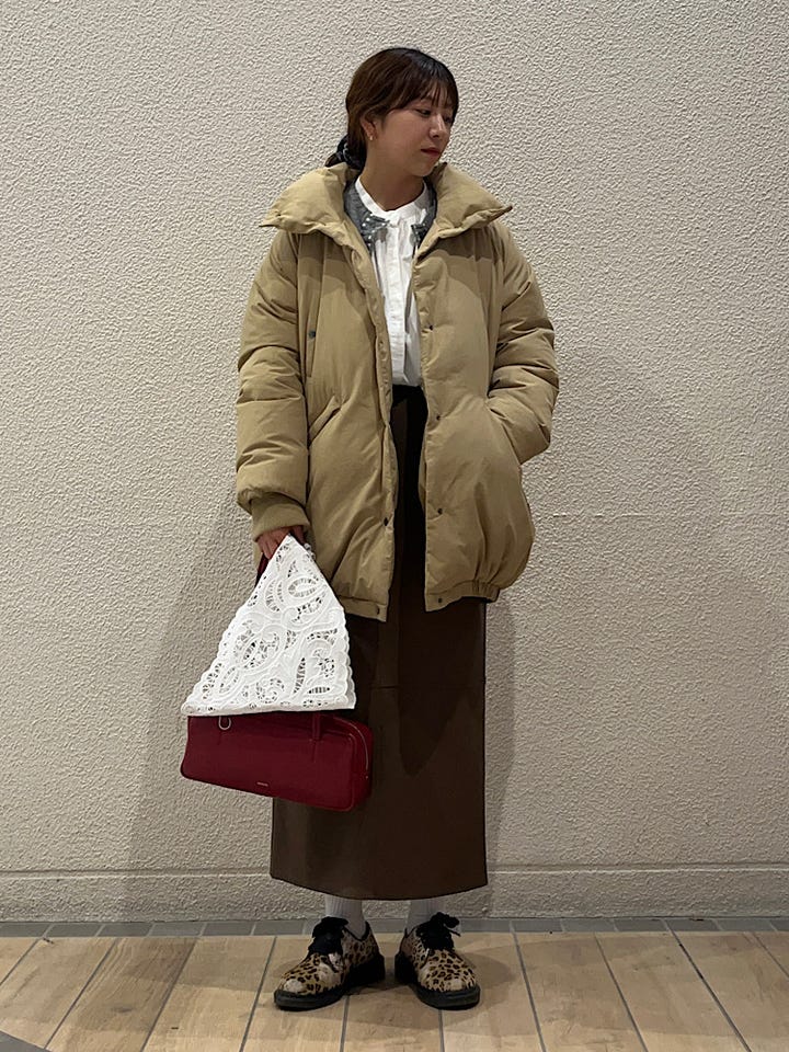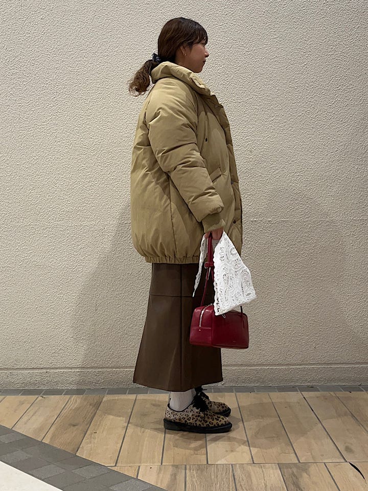 〔ONE SIZE〕SHIPS any: ナイロン スタンドカラー ダウン コクーン コート