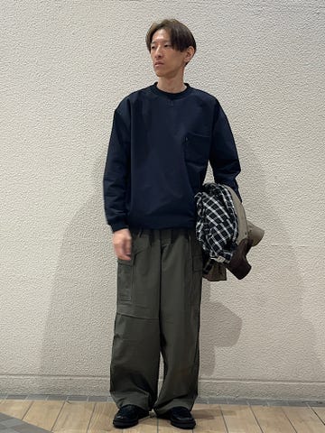 着用アイテム:裏毛 バイカラー ペプラム スウェット プルオーバー ホワイト