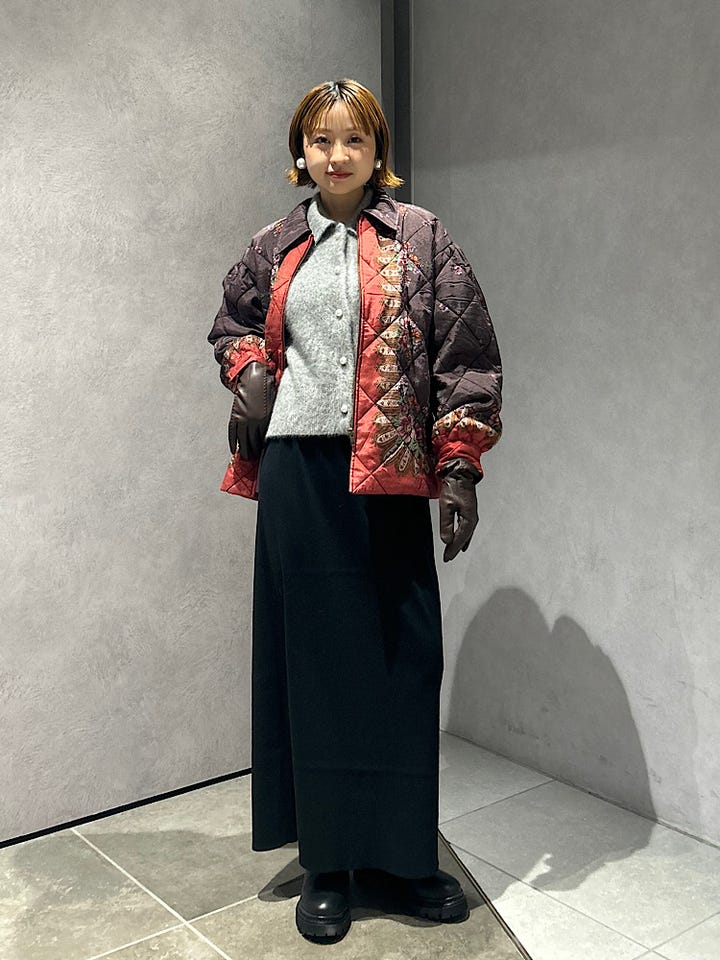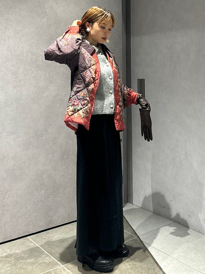 素材感・着心地:薄めに中綿入りでジャケットよりもボリュームをプラスしてくれます。長すぎない丈感でボトムスはワイドでもスリムでも幅広く合わせていただけます。ボリュームのある袖がかわいいです。