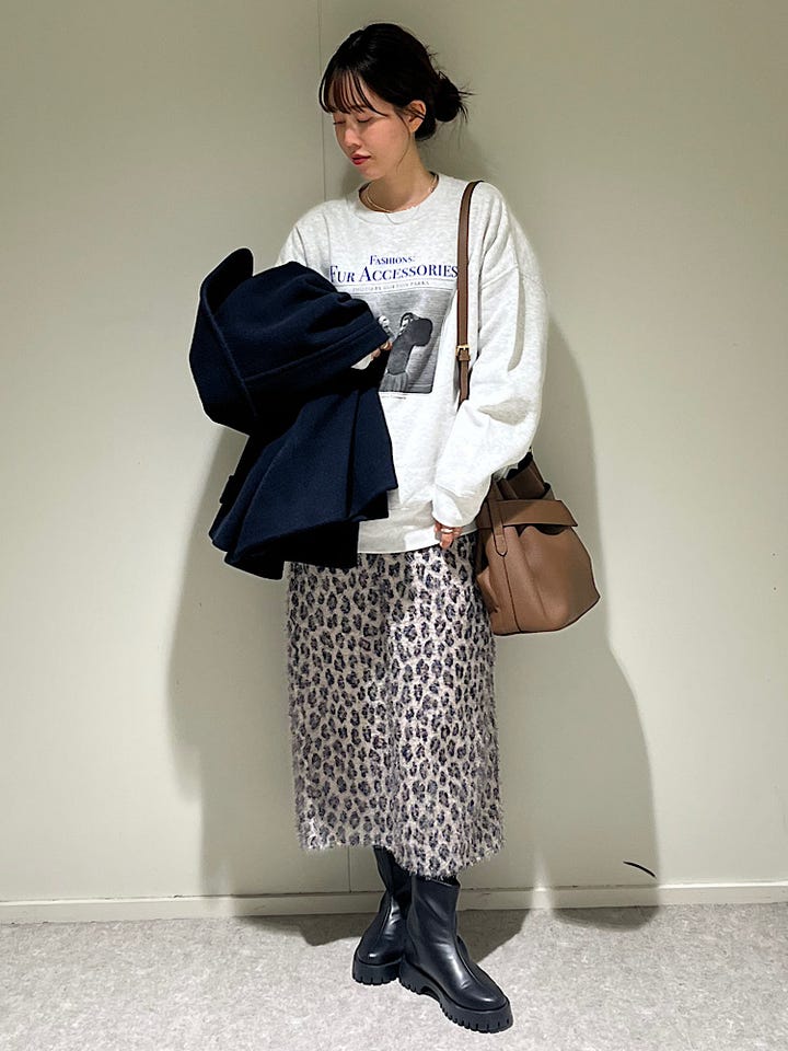 〔ONE SIZE〕《追加予約》SHIPS any:〈手洗い可能〉レオパード ジャカード Iライン イージー スカート
