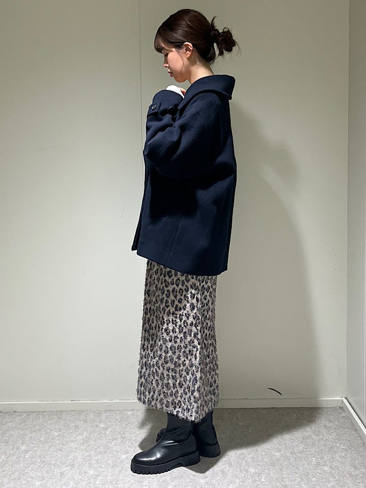 見頃ゆったりめでやや肉厚な生地になっています。しっかり暖かみのあるウールコートです。ミドル丈なのでボトムはいろんな合わせで楽しめます!インナーにスウェットを着ても余裕があるサイズ感でした!