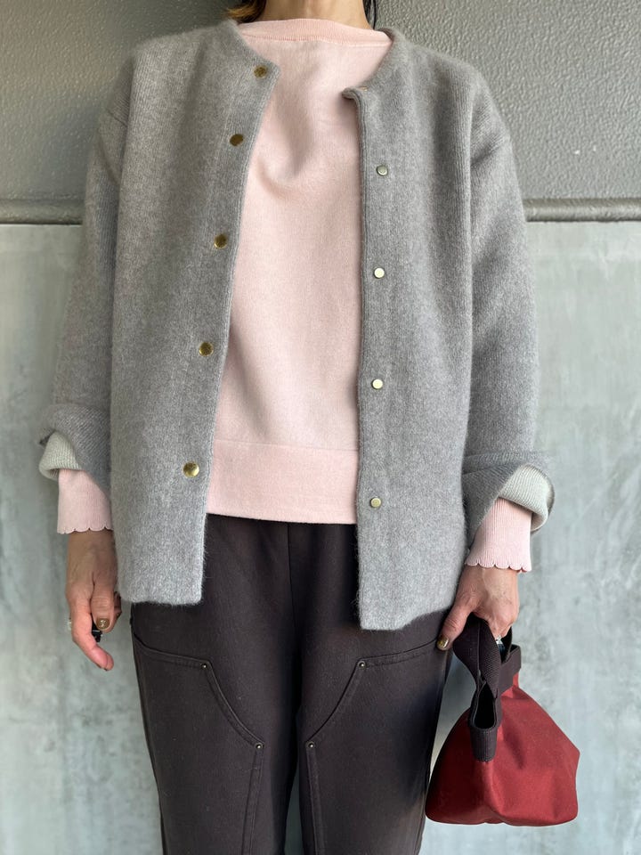 〔ONE SIZE〕〈手洗い可能〉コットン カシミヤ混 スカラップヘム ボートネック プルオーバー
