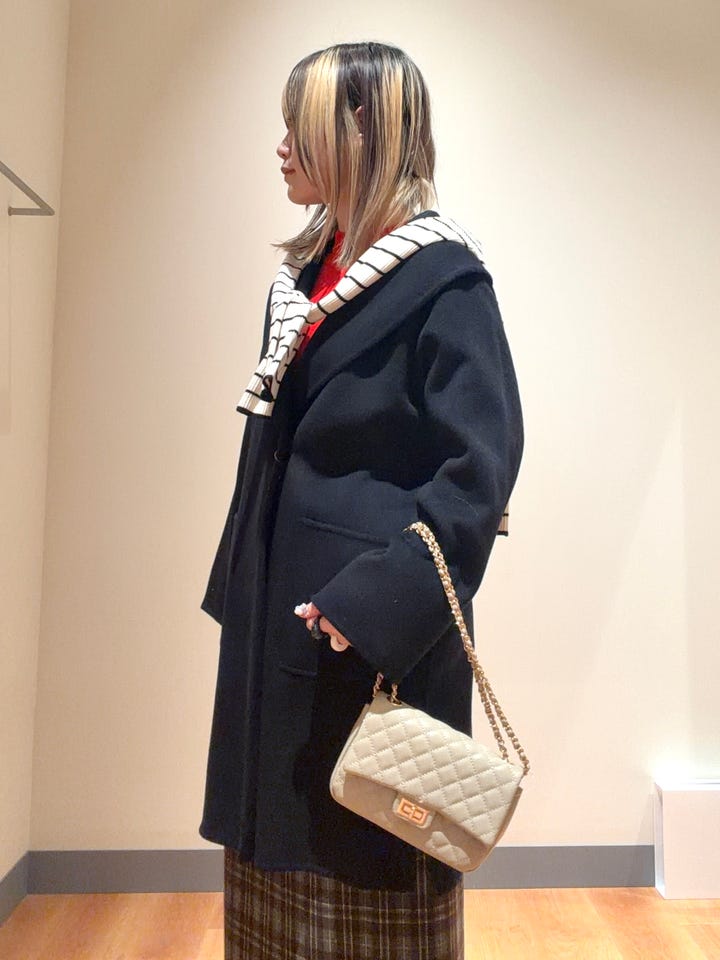 着心地: ふわっと軽くて、カシミヤ入りの素材で暖かいです!大きな襟がアクセントになります!