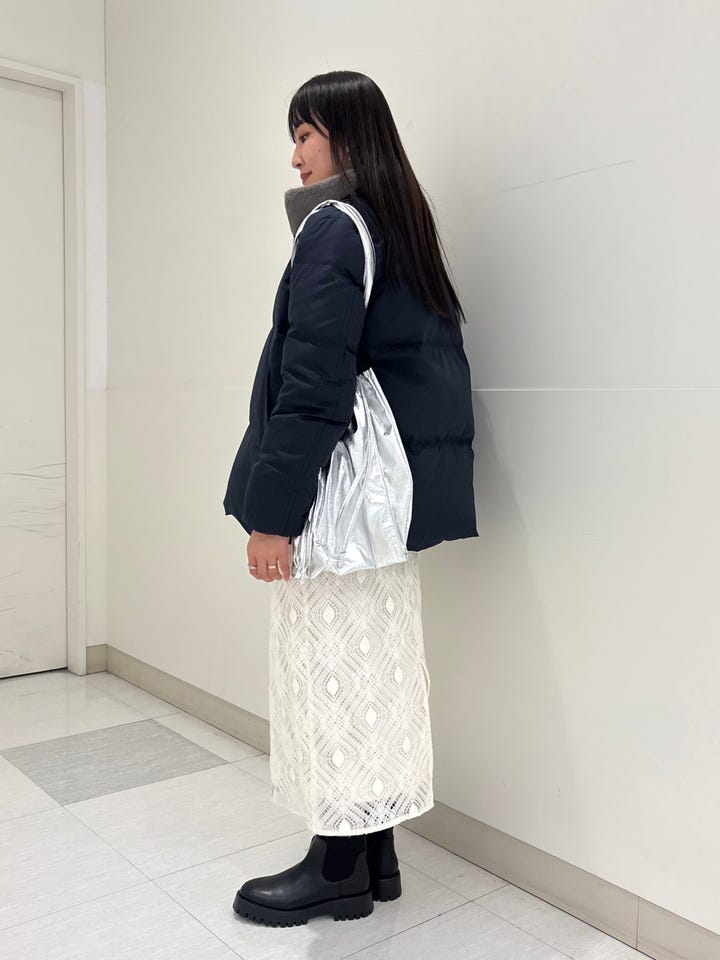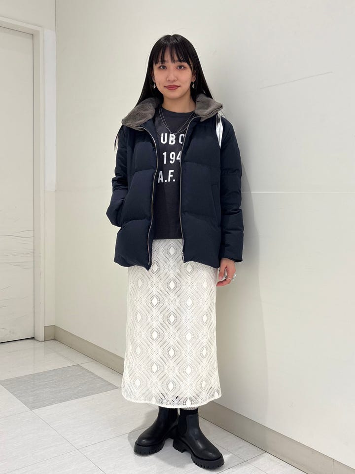 肩が落ちていないため、スッキリ見えします。オーバーサイズで着膨れしてしまうのが苦手な方にはおすすめのアイテムです。首元のファーも可愛く、ジップを閉じるとマフラーレスでも使えるアイテムです。