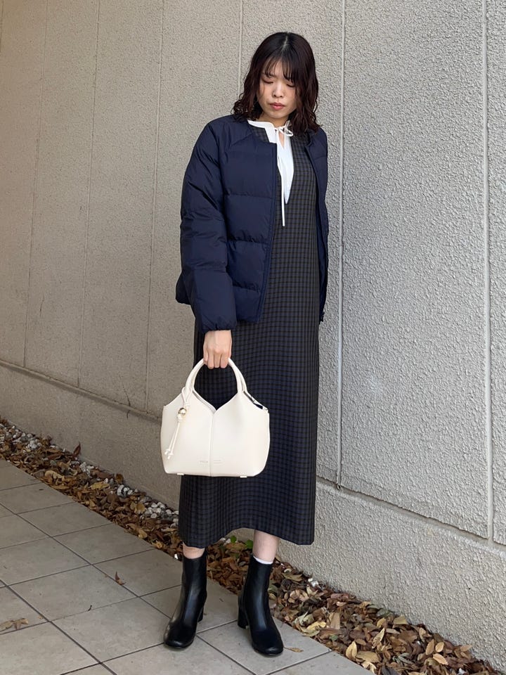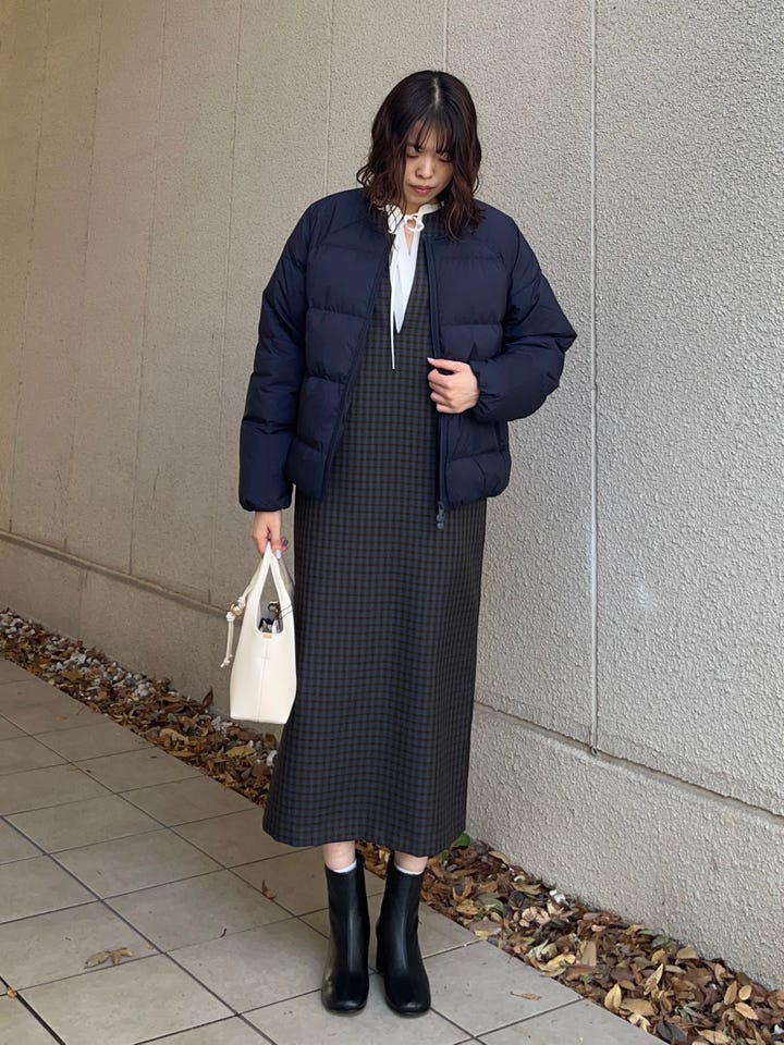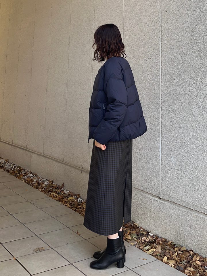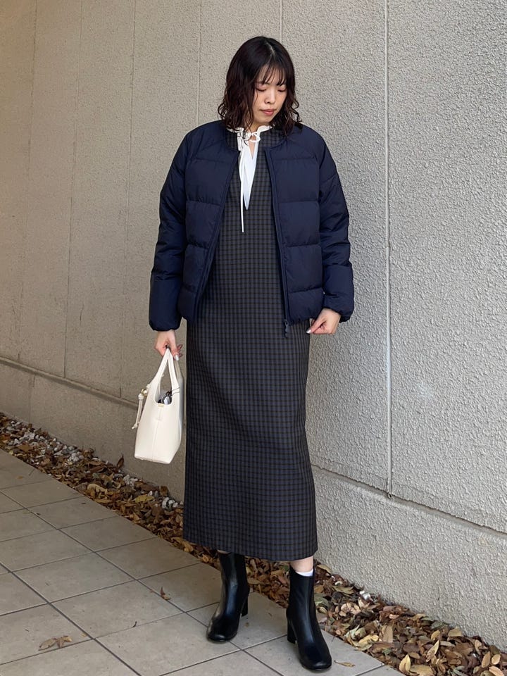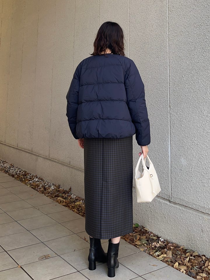 ノーカラーでショート丈感なので、重すぎない印象で着回し出来ます。