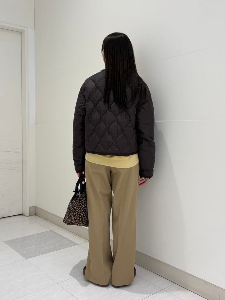 ゆったりとしたサイズ感。丈がコンパクトで、小柄な骨格の方にもおすすめです。一枚でも可愛く着ていただけますが、特に寒い時期にはインナーダウンとしても使えるアイテムです。