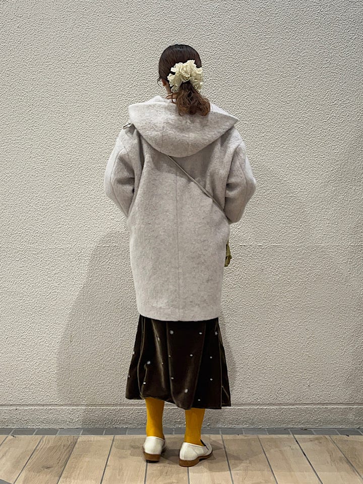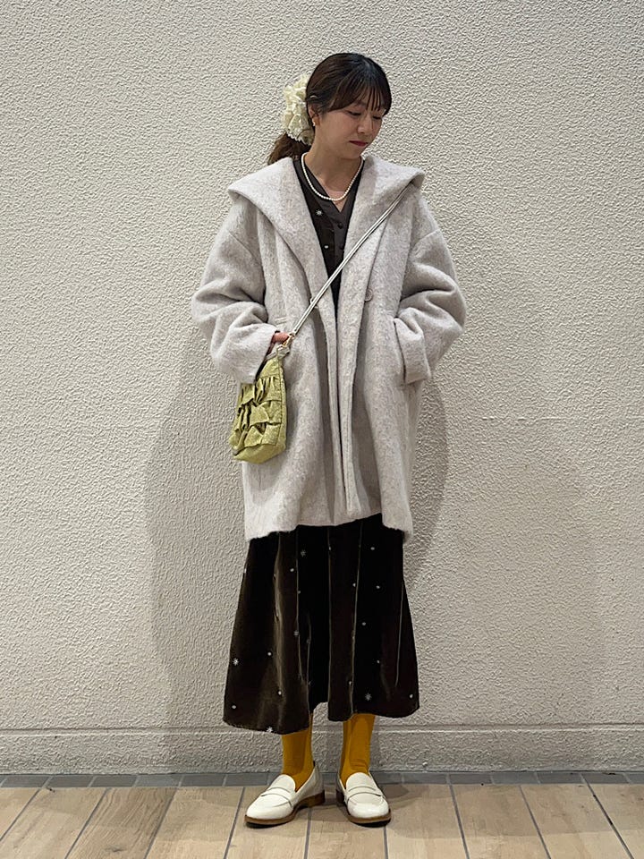 着用アイテム: SHIPS any:〈手洗い可能〉ポリエステル ベロア 刺繍 タック フレア ワンピース