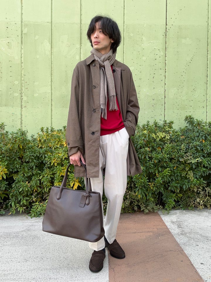 素材感/着心地:生地感にハリがあり上品な印象なステンカラーコートです。リバーシブル仕様なので気分によって印象を変えれます!