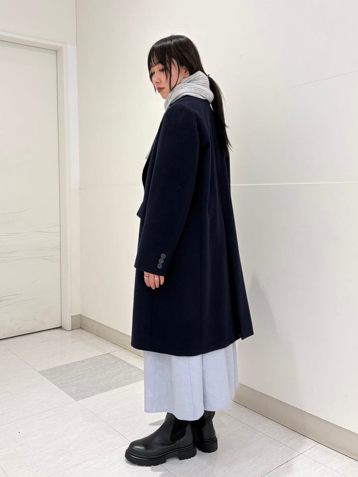 肩周りゆったりとした着用感。スッキリとしたシルエットで、普段サイズからワンサイズUPの38でも着膨れすることなく着られます。ゆとりがあるのでニットやスウェットを合わせるのもおすすめです。ベーシックなデザインで流行りなく毎年着ていただけます。