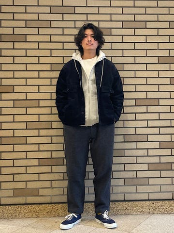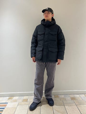 素材感・着心地:ダウンフェザーを多い量入れていないため動きやすさがあり、ダウンボールが大きいため少量のダウンフェザーでも保温力が高い、撥水加工もしてあるためある程度の雨などにも対応できる