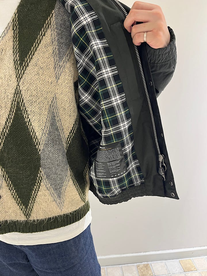 素材感・着心地:スタンドタイプのトランスポートなので寒風を防いでくれる、着丈部分をゴムで絞ってあるのでシルエットが綺麗、天候も気にせず着用ができるので汎用性の高いアウター
