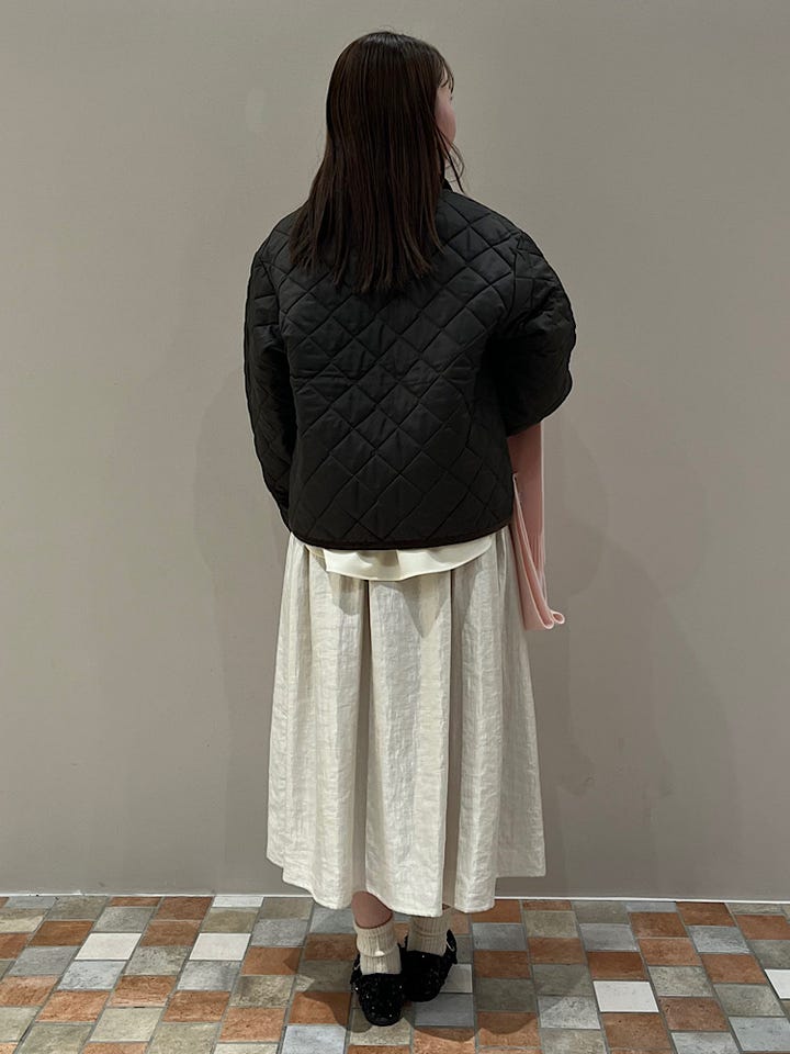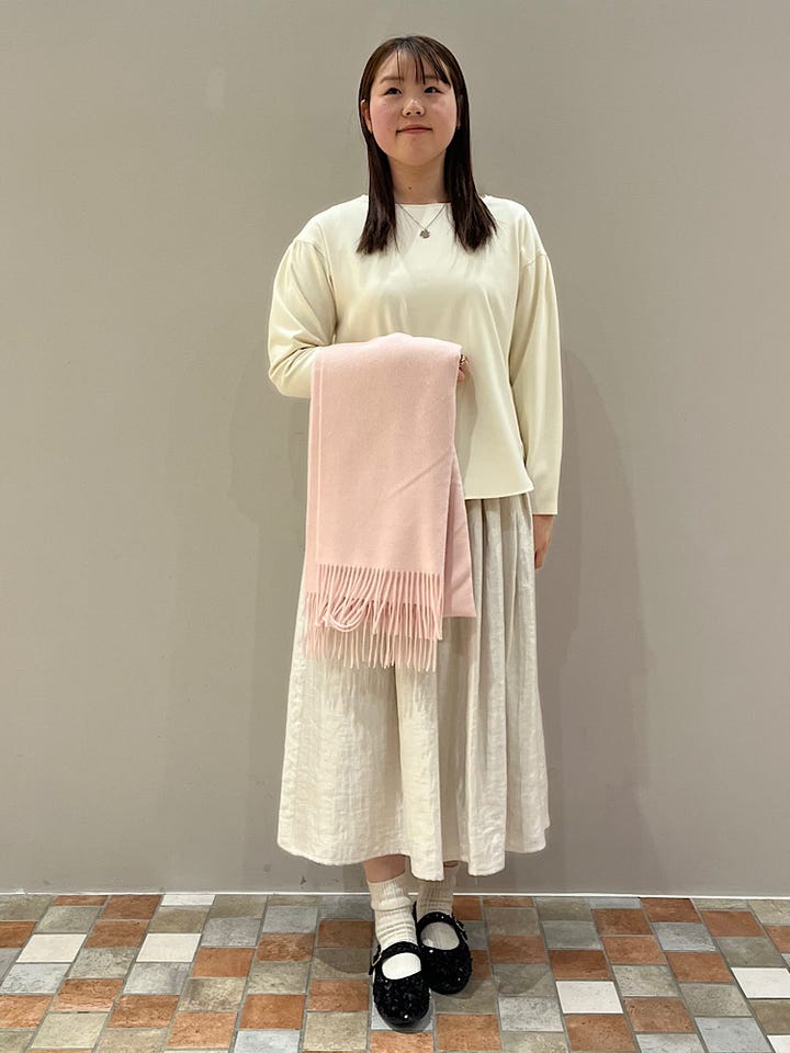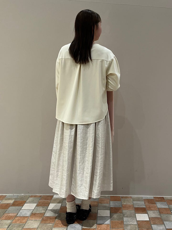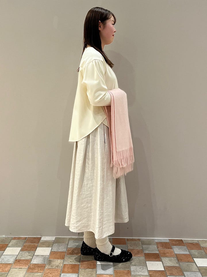 形もきれいで、後ろにタックが入っているのでボトムスインしなくても着られます!ジャケットやカーディガンの下にインナーとしても活用でき、春先まで使えそうです!