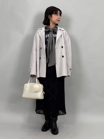 ショート丈なので、パンツやスカートどちらでも合わせやすいです!これ1枚着るだけで、印象が変わるので