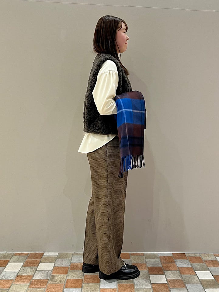 千鳥格子、ウール素材で、温かみがあります◎