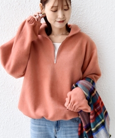〔ONE SIZE〕〈洗濯機可能〉フリース 裾 ドロスト ハーフ ジップ プルオーバー