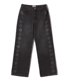 着心地:股上やや浅めのストレートシルエット。ヒップポケットの刺繍やアーガイル柄のプリントなどブランドならではの可愛さです!